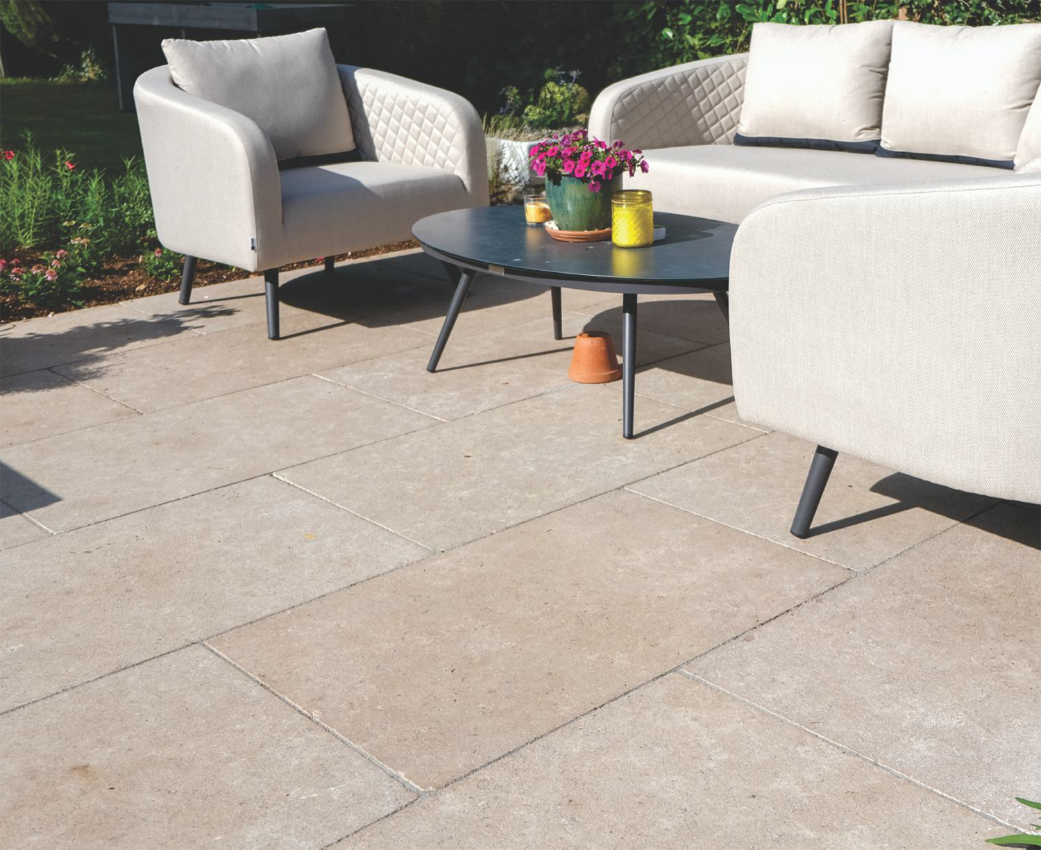 The Lusso Antique tile brings timeless warmth with a soft, textured finish that pairs beautifully with modern furniture. Its light, earthy tones enhance depth and create an inviting outdoor ambiance.
